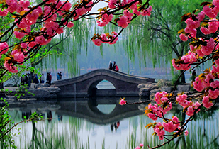 樱棠春晓:这里的垂樱最早栽植于1990年,目前主要品种为垂枝樱和八重红枝垂,其特点是枝如垂柳,姿态婀娜。垂樱长势较慢,因而这几株大树显得尤为珍贵。盛花时节,枝条随风摇曳,显得灵动迷人。绿地上 “樱棠春晓”的石刻为冰心老人的墨宝,因垂樱岛西侧景区以晚樱和西府… 详情>>